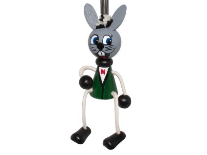 Vlk na pružině. Věčný protivník zajíce. Hezká a veselá závěsná dekorace nejen do dětských pokojíčků. Když budete chtít, pružinu lze snadno sundat a poté si můžete postavičku posadit třeba na poličku nebo skříňku.