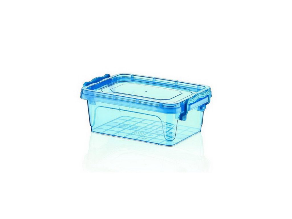 Multibox obdélníkový barevný 0,6L - modrý. Multifunkční transparentní modrá dóza s víčkem. Uzavíratelná, stohovatelná, není plně těsnící, na tekutiny nevhodná, při naklopení by vytékala. Vhodná na uložení drobností v kuchyni, oříšků, pomazánek a jiného. Najde uplatnění i v dětských pokojíčcích na korálky, pexeso a jiné dětské poklady.