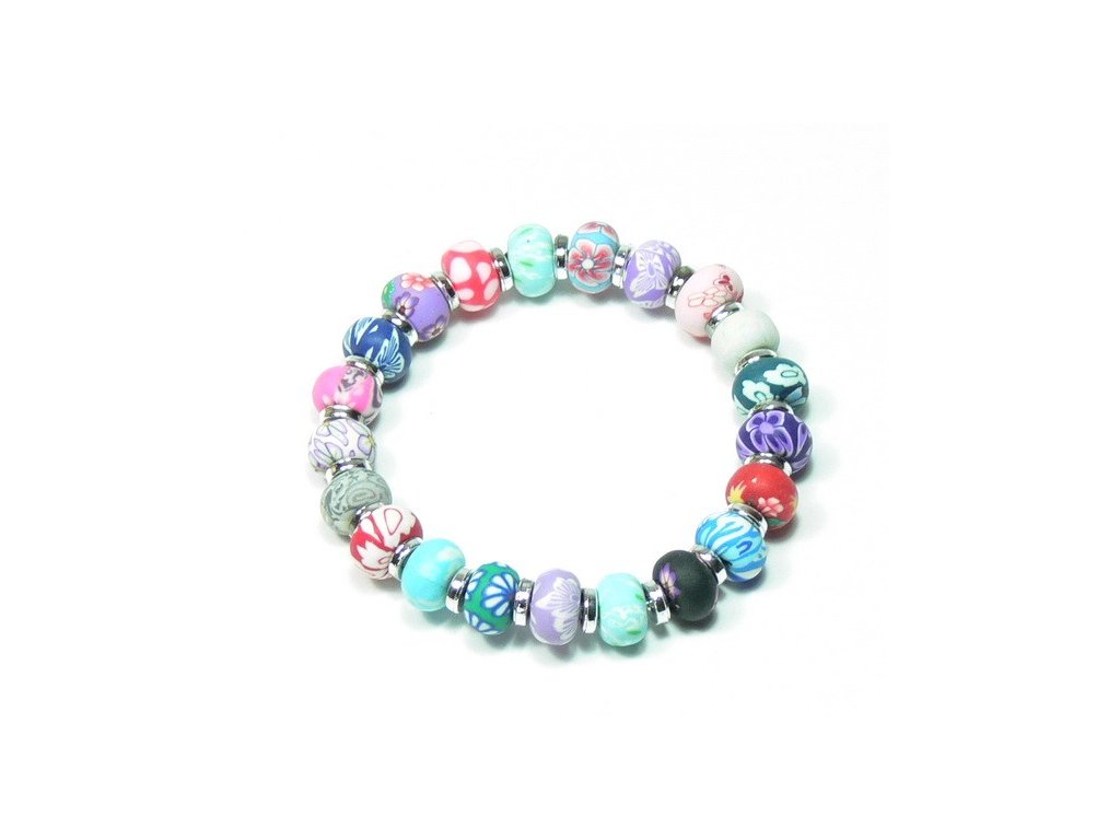 Nádherný, velmi precizně zpracovaný náramek z fimo hmoty. Korálky jsou na elastické šňůrce, která usnadňuje navlékání. Velikost korálku je 1 cm.Doplňkové parametry