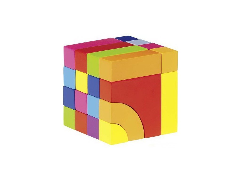 Od pokládací hry až k samotné 3D kostce … to už je tedy výzva!Kostky jsou vyrobeny z masivního dřeva a barveny nezávadnými barvami. Stavební kostky obsahují 24 dílků a dodávají se v krabičce s bavlněným pytlíkem.Doplňkové parametry