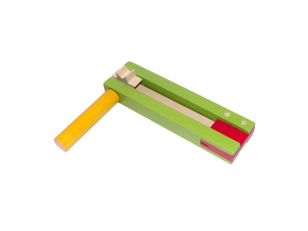 Dřevěná řehtačka tříbarevná II. Vydává opravdu velký rámus, protože plátek i ozubené kolo jsou vyrobeny z tvrdého bukového dřeva. S touto řehtačkou budete slyšet hodně daleko.