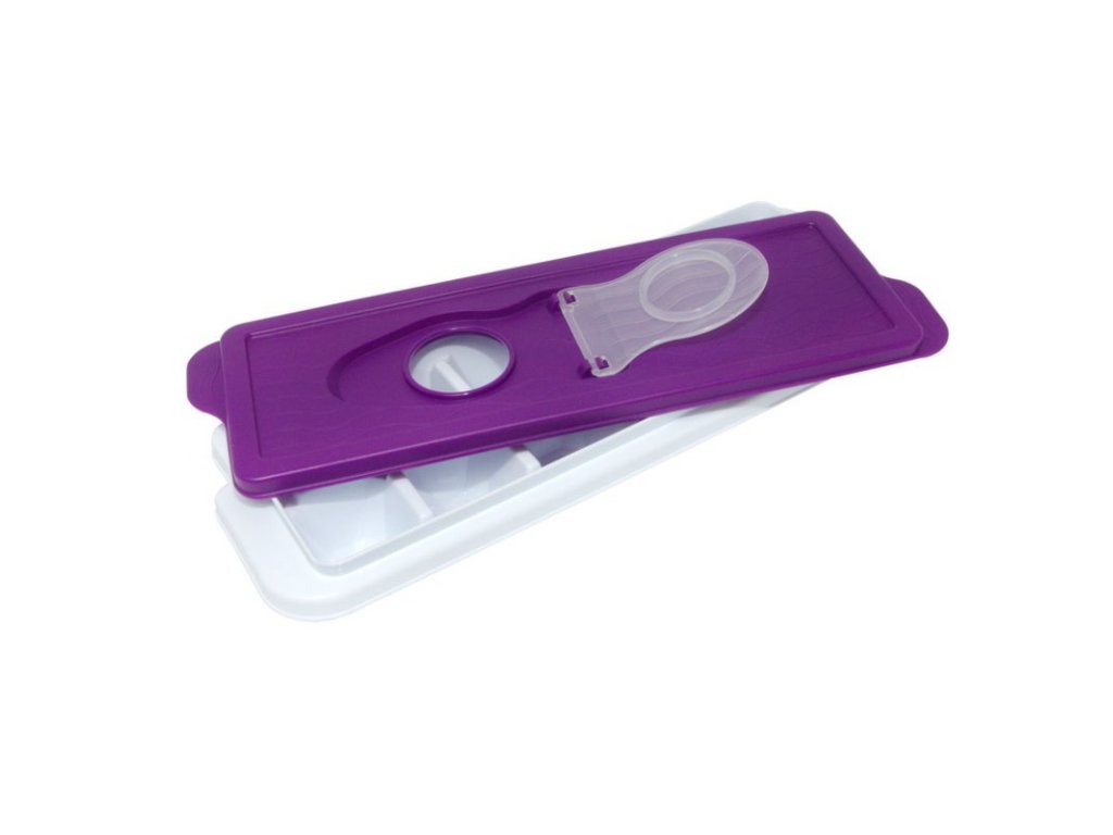 Forma na led - fialová. Na 12 kostek ledu, s nalévacím otvorem s víčkem.
