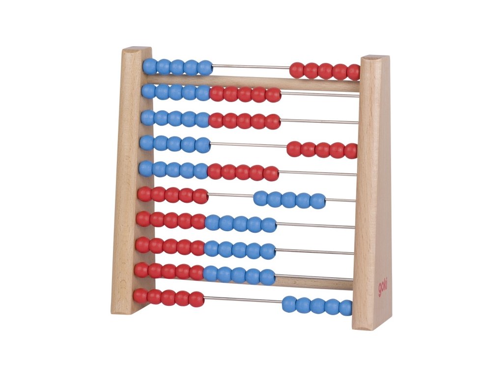 Robustní a stabilní počítadlo ze dřeva je vhodné pro pedagogické využití. Perličky v barvách modrá a červená se posunují v 10 řadách po kovových tyčkách.Doplňkové parametry