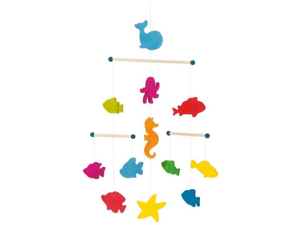Závěsný kolotoč - Mořský svět. Závěsný kolotoč dnes najdete snad v každém dětském pokoji. Je určen především pro malé děti, které leží v postýlce. Závěsné kolotoče se otáčí s mírným pohybem vzduchu a proto je pro děti napínavé je pozorovat. Kolotoče jsou vhodné nejen nad dětskou postýlku či přebalovací pult, ale i jako dekorace do dětského pokojíčku. Závěsná dekorace není určena ke hraní.